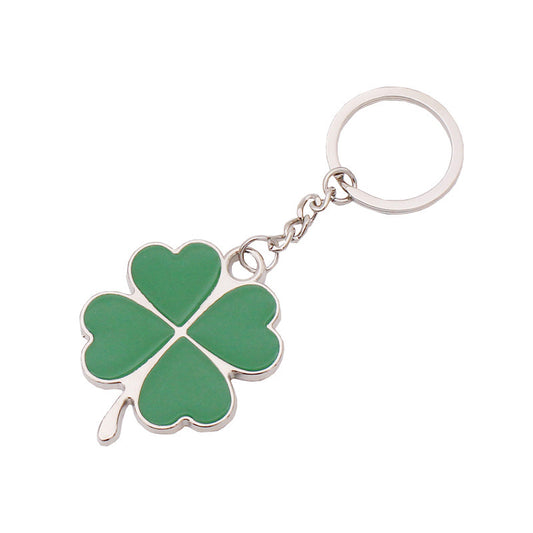 Lucky Four Leaf Clover Keychain Silver Rhodium Green Enamel 4 Leaf Clover Keyring Irish Love Key Chain St Patrick Day Key Ring