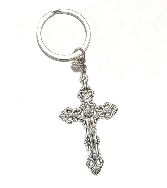 Silver Crucifix Cross Keychain – Religious Christian Key Ring Gift for Men & Women