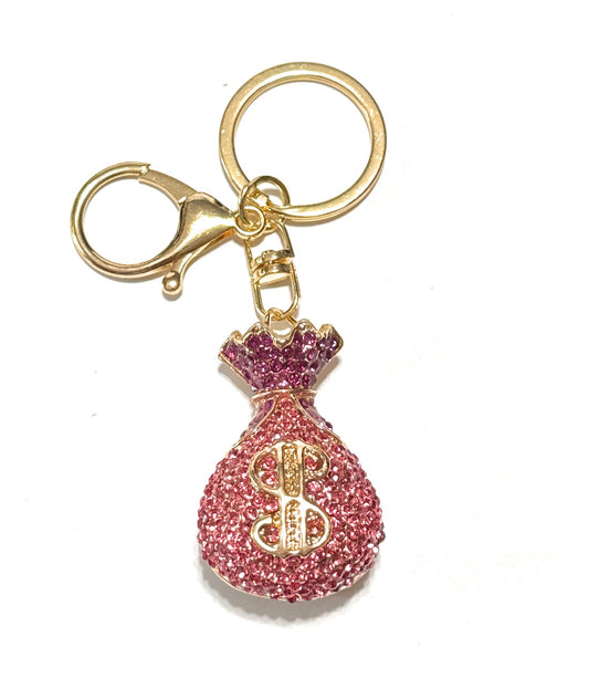 Pink Rhinestone Money Bag Keychain – Crystal Dollar Sign Purse Charm