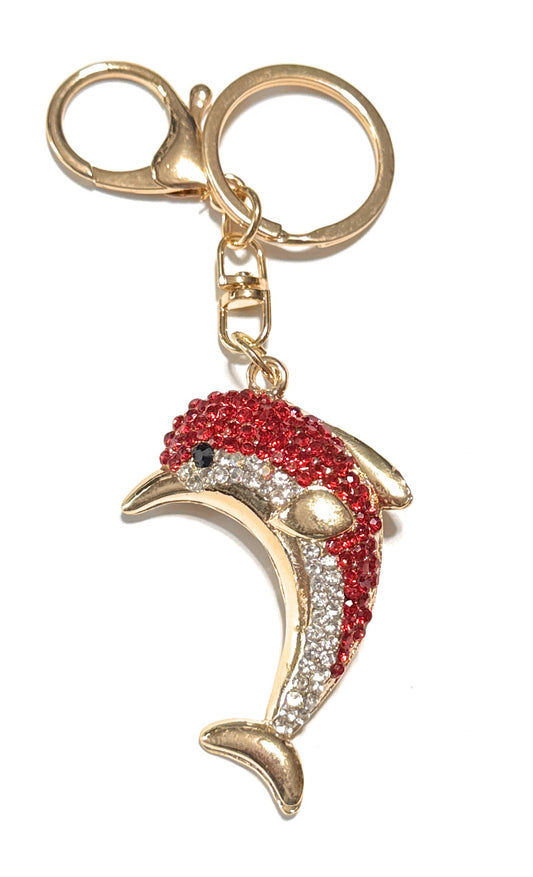 Red Rhinestone Dolphin Keychain – Crystal Animal Keyring, Sparkly Ocean Lover Gift