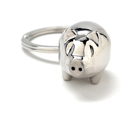 Lucky Pig Keychain Solid Silver Piggy Charm Car Key Chain with Key Ring Pig Lover Gift Bag Hog Purse Charm