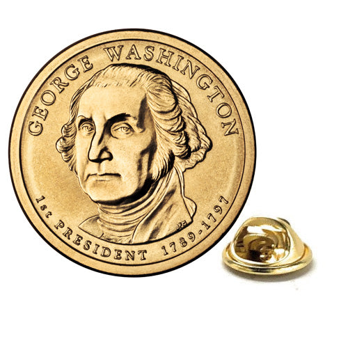 George Washington Presidential Dollar Lapel Pin, Uncirculated One Gold Dollar Coin Enamel Pin