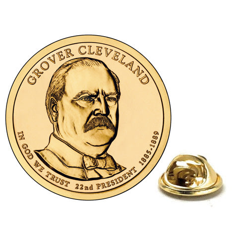 Grover Cleveland Presidential Dollar Lapel Pin, Uncirculated One Gold Dollar Coin Enamel Pin