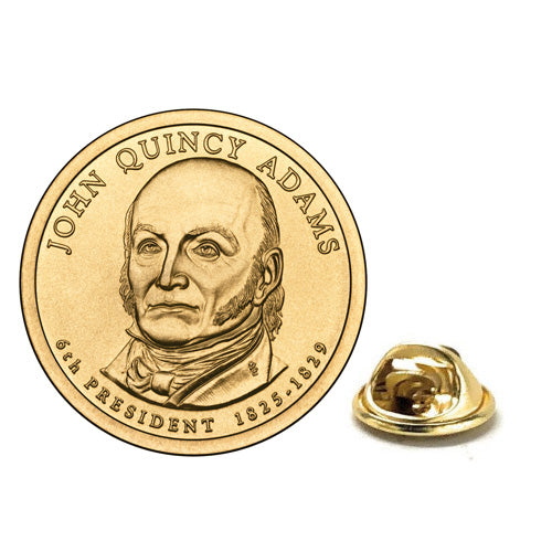 John Quincy Adams Presidential Dollar Lapel Pin, Uncirculated One Gold Dollar Coin Enamel Pin