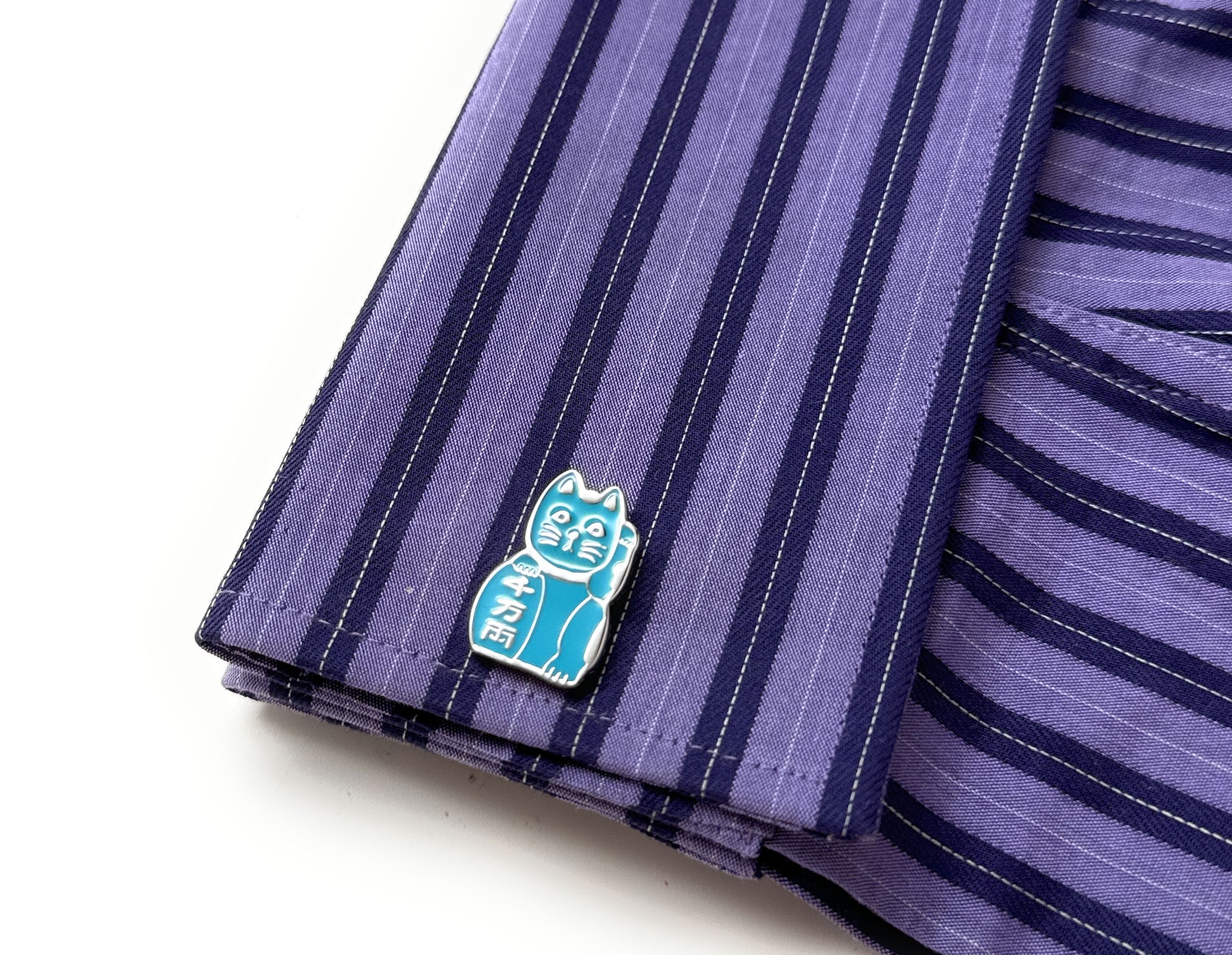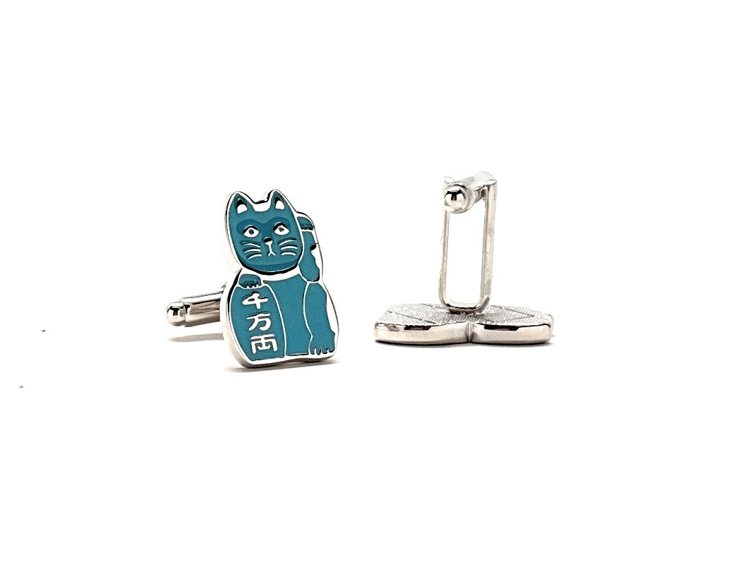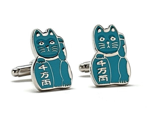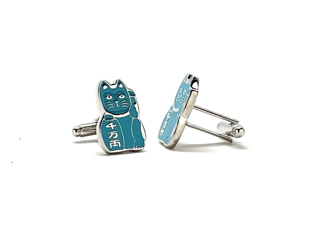Blue Maneki-neko Cufflinks Japanese Cat Cufflinks Lucky Cat Blue Brings Harmony and Peace to it's Owner Cuff Links