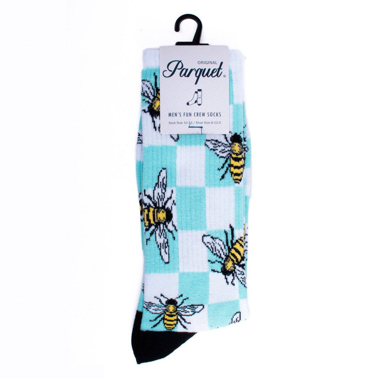 Checkered Bumble Bee Ribbed Socks Novelty Sock Funny Socks Bee Theme Socks Fun Gifts Mens Socks Funny Groomsmen Socks Lucky Socks