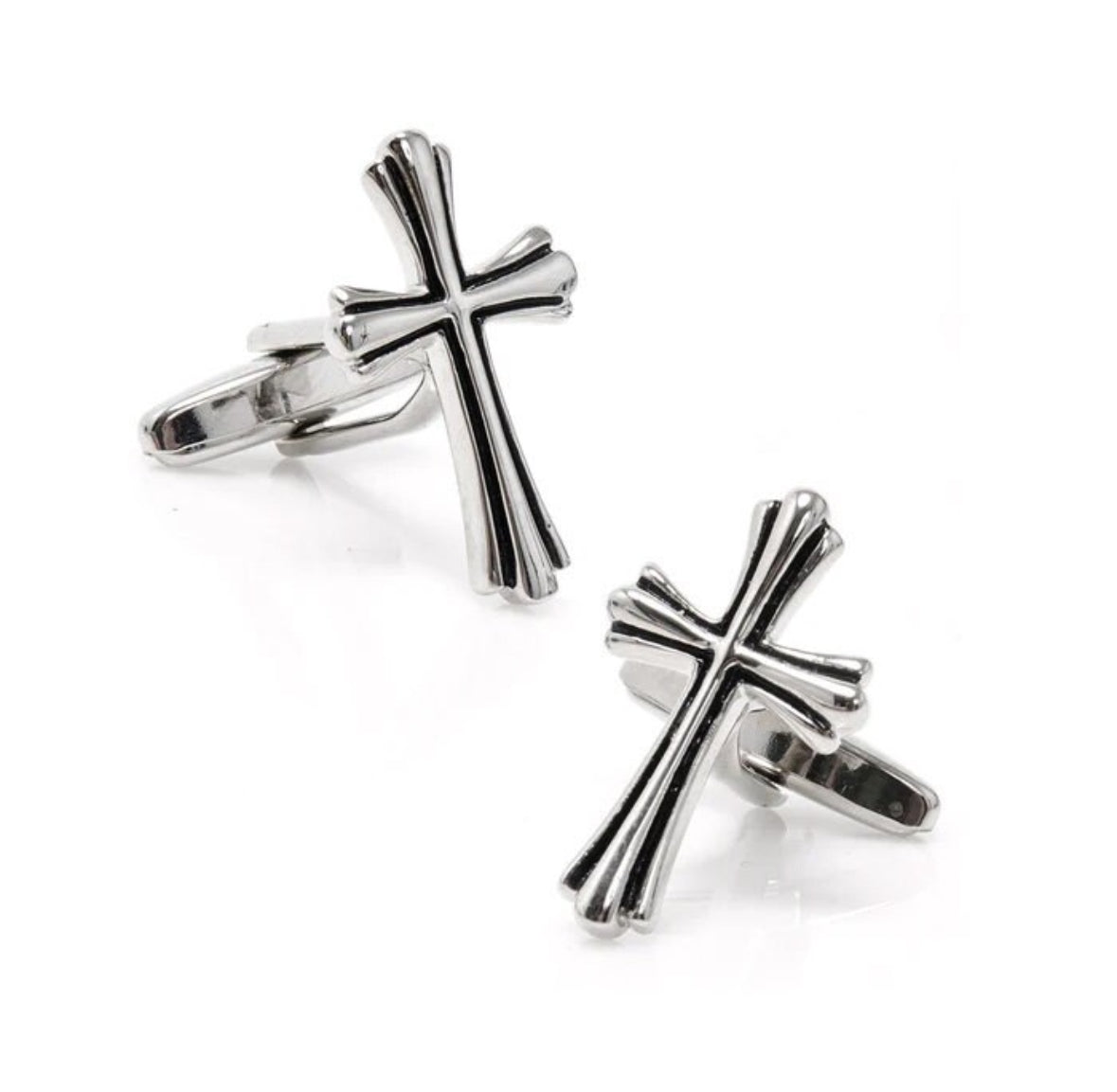 Cross Cufflinks Christian Gifts Silver Grooved Design Black Enamel Trim Religious Gifts Catholic Gifts Priest Cross Cuffs Pastor Gift Clergy