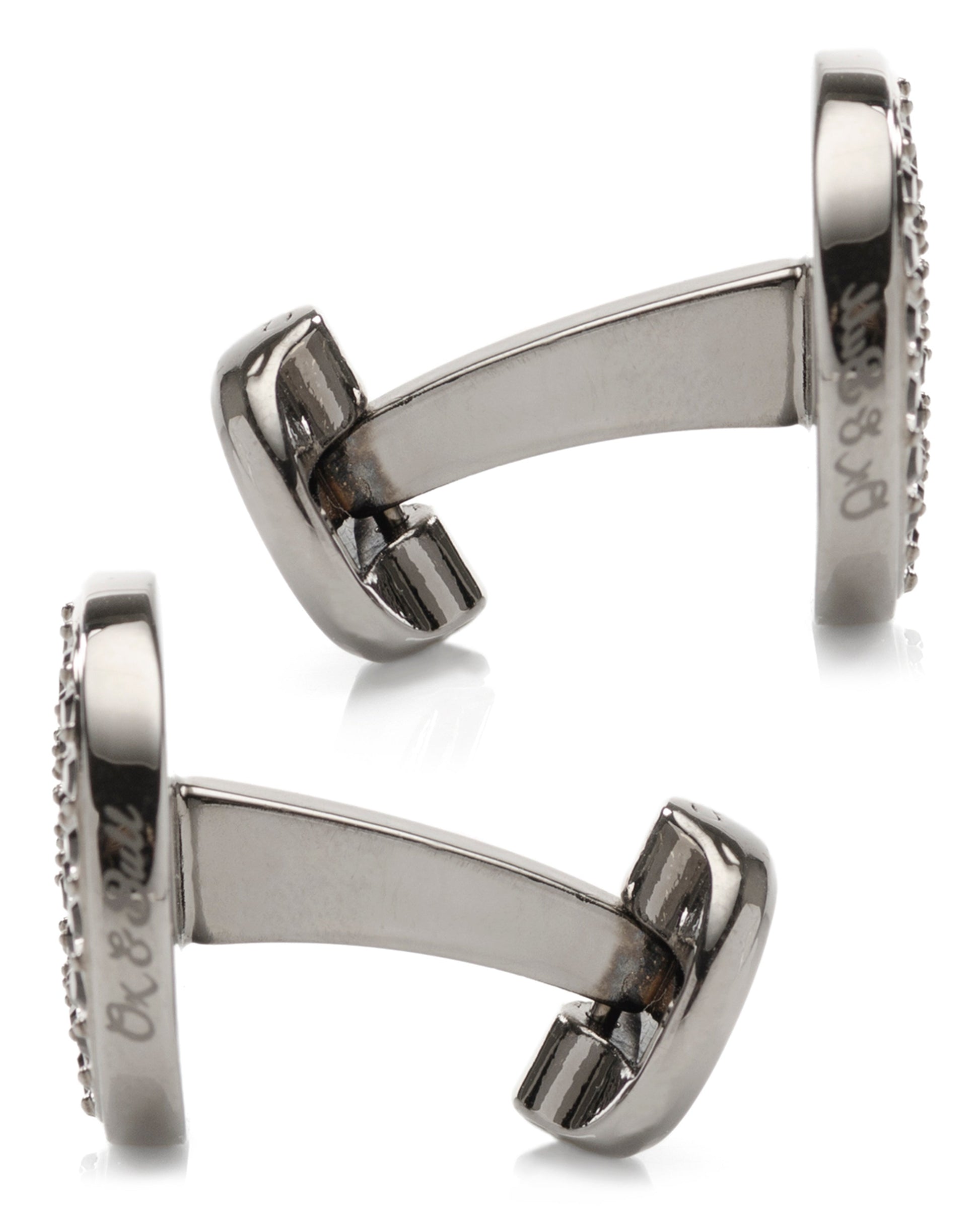 Adorned with both black and pink pave crystals set on gunmetal, our Crystal Button Pave Cufflinks are designed in the likeness of a very fashionable button. The expert craftsmanship of our base metal cufflinks ensures long-lasting durability. These cufflinks are perfect for formal events and will elevate your style while staying classy.