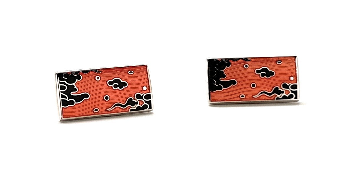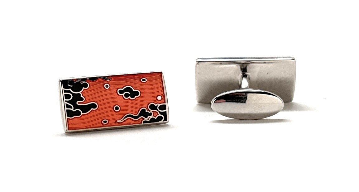 Cufflinks Amber Nights Classy Design Personalized Cufflinks Wedding Cufflinks Groomsman Gift Black and Orange Enamel Silver Trim Clouds