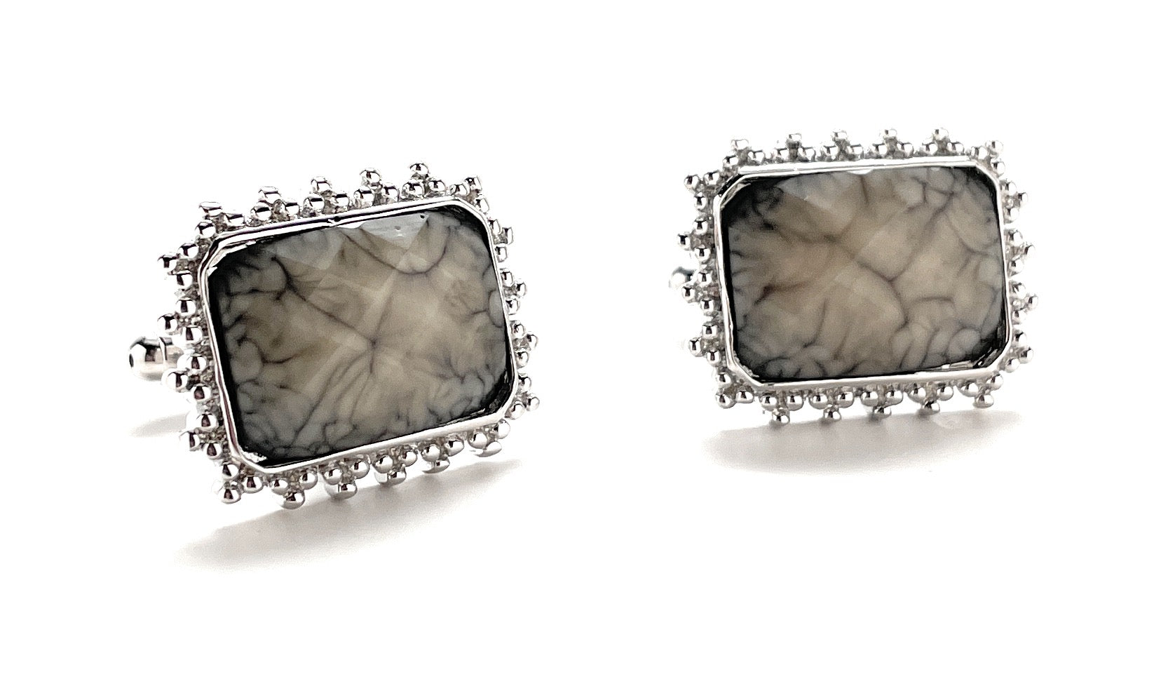 Cufflinks Silver City New Smokey Marble Cufflinks Cushion Cut Agate Cannon Ball Silver Trim Cuff Links Power Stroke Cuffs