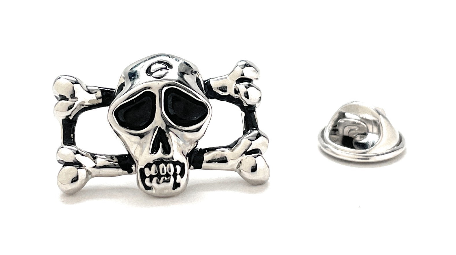 Double Bone Skulls Suit Lapel Pin Silver Black Enamel Pin