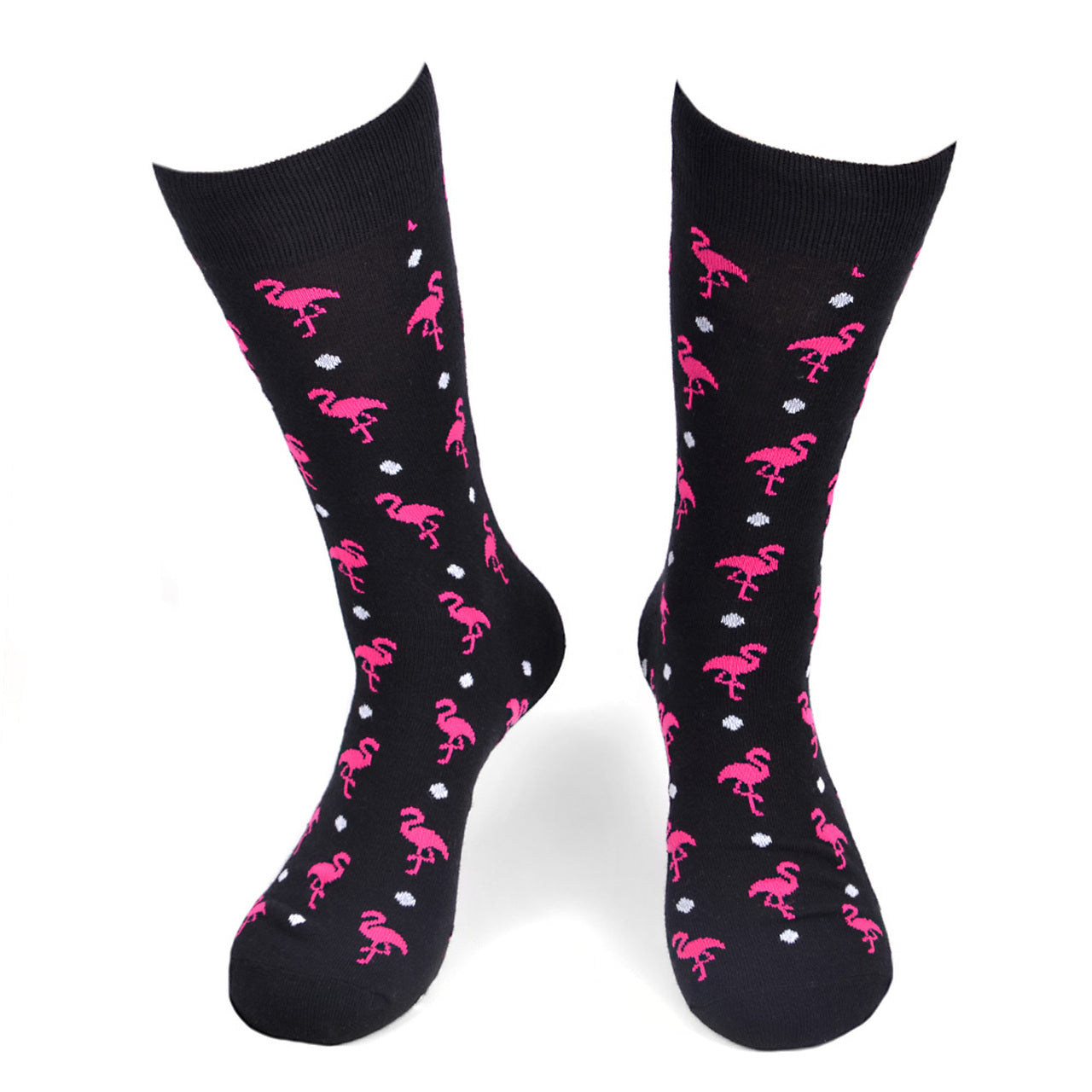Fun Men's Flamingos Novelty Socks Black with Pink Flamingos Classic Socks
