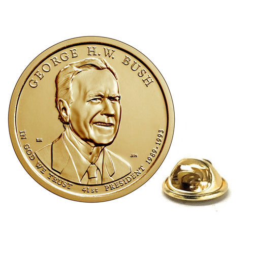 George HW Bush Presidential Dollar Lapel Pin, Uncirculated One Gold Dollar Coin Enamel Pin George Bush