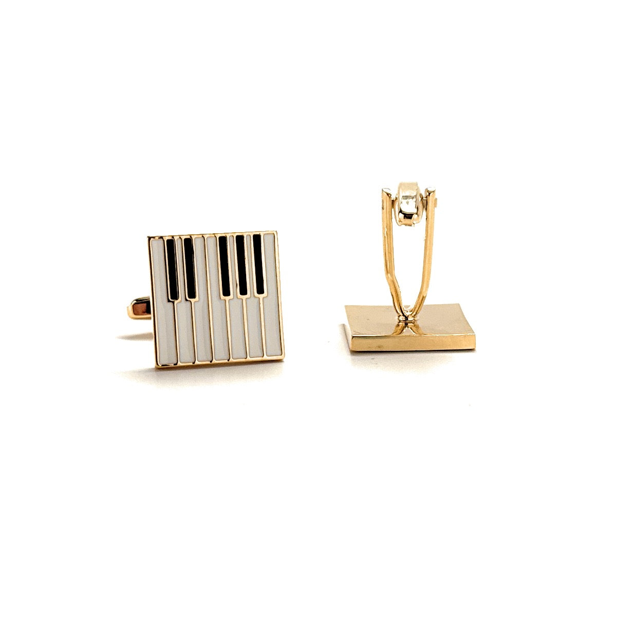 🎹 Make your style sing. These Gold Piano Keys Cufflinks are the perfect accessory for music lovers, pianists, and performers who want to express their passion in every detail. Featuring a polished gold-tone finish with black and white enamel keys, these cufflinks add a refined touch to formalwear while showcasing your love for music.
