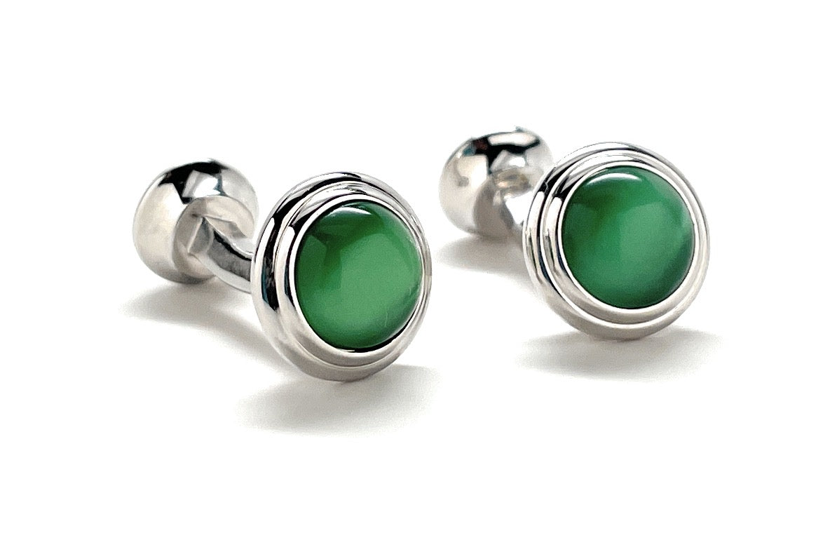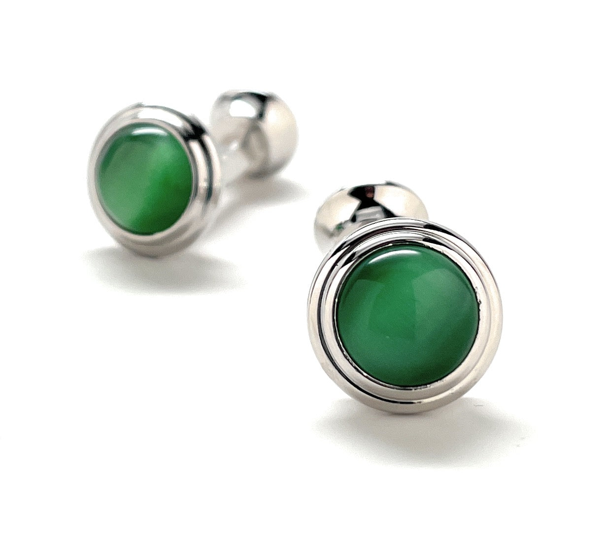 Green Cats Eye Cufflinks Straight Power Post Design Fully Detailed Double Ended Chrysoberyl Cuff Links Groomsmen Cufflinks Wedding Cufflinks
