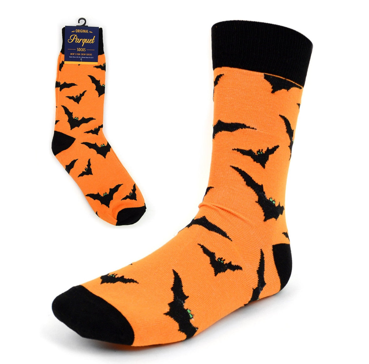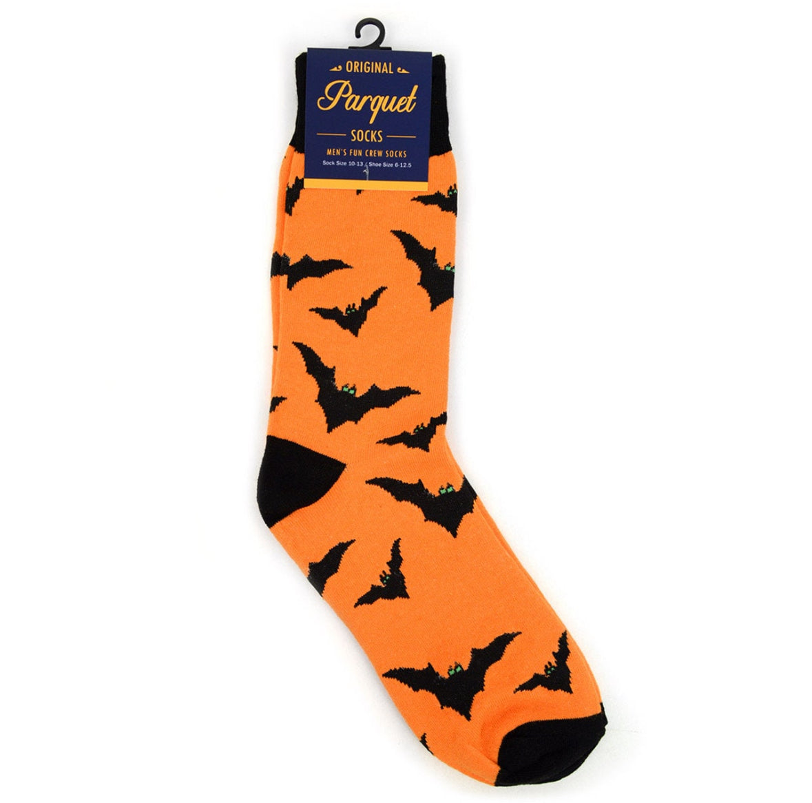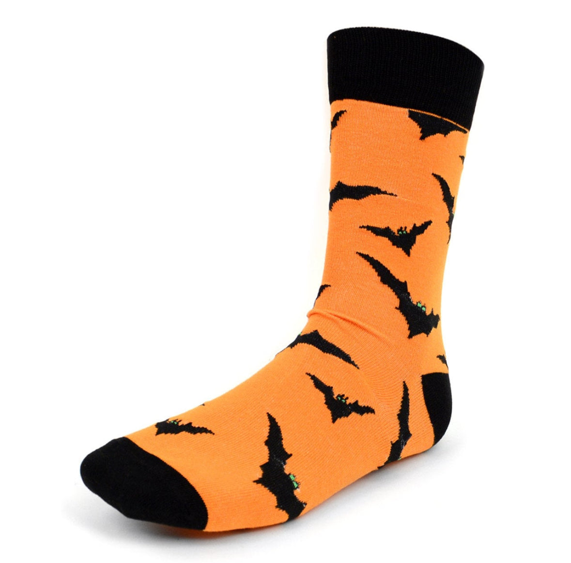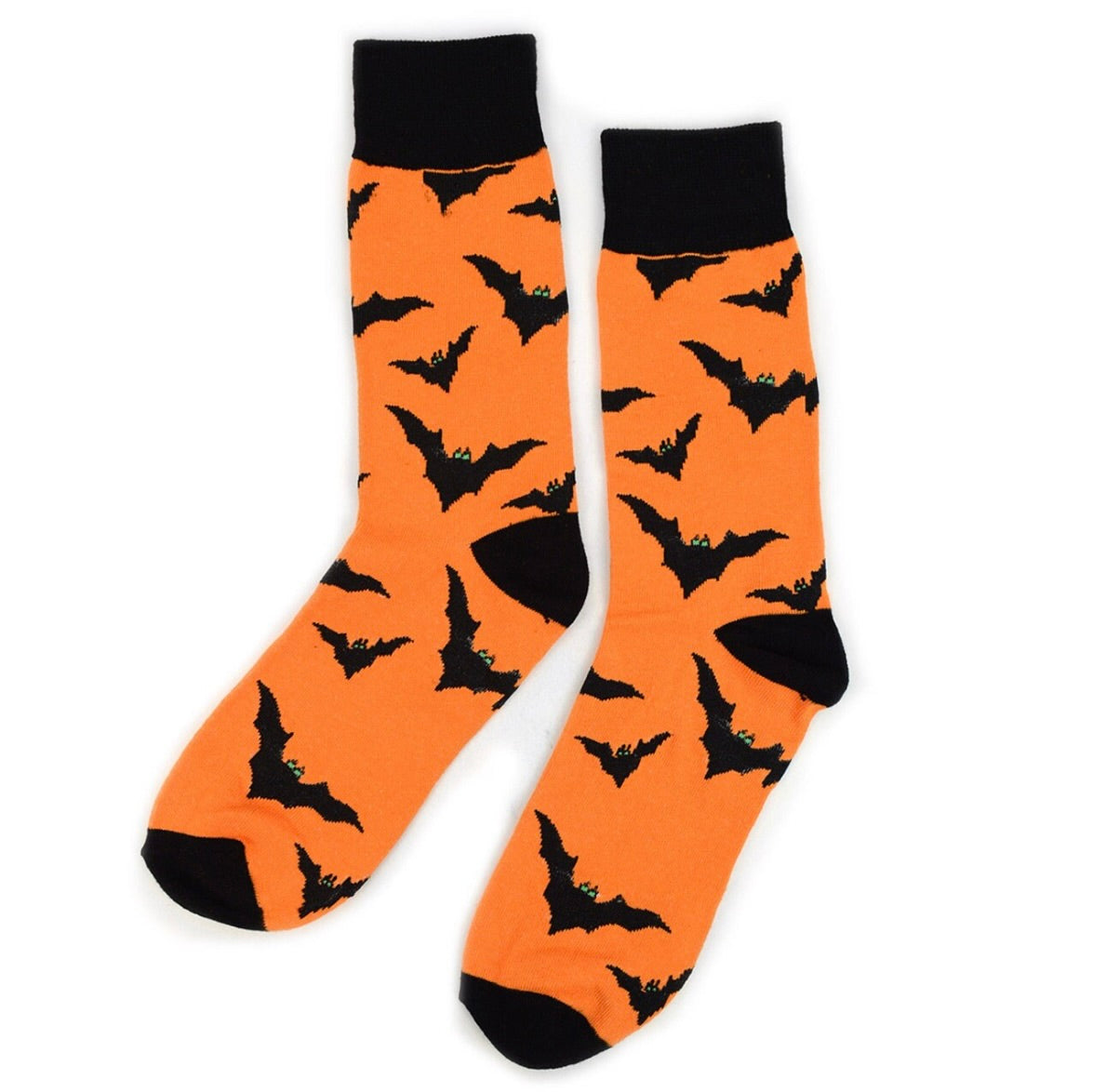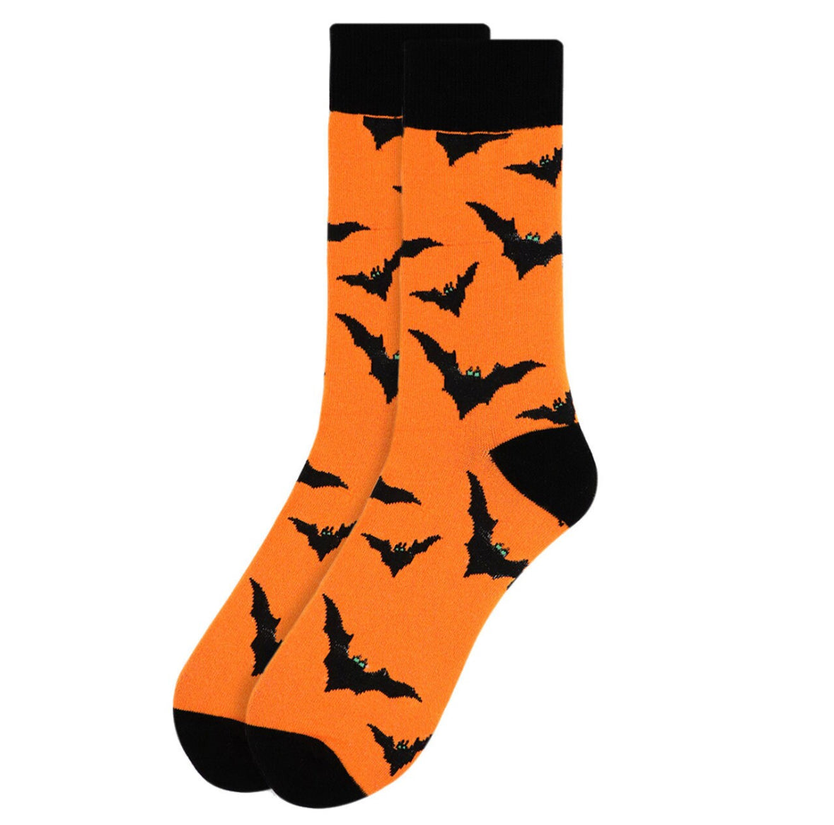 Halloween Men's Socks Orange Halloween Black Bats Socks Fun Crazy Party Socks