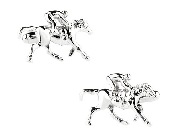 Horse Jockey Cufflinks Silver Rhodium Platted Lucky Horses Cuff Links Horse Equestrian Silver Lucky Horse