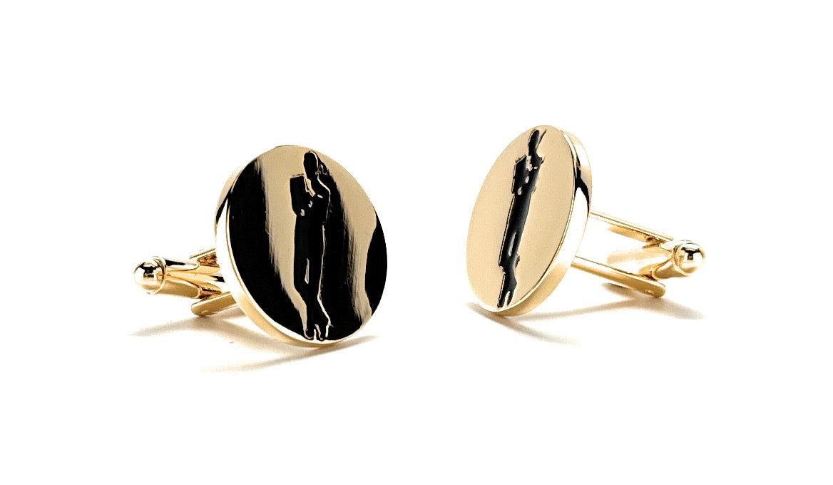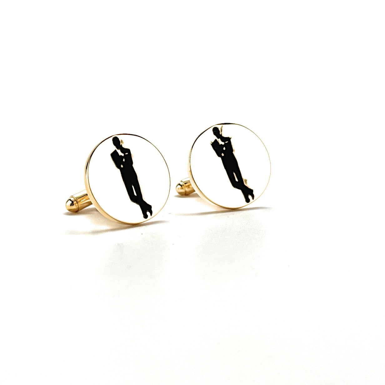 James Bond Cufflinks Famous Movie Poster Pose Cuff Links Super Spy Collection Royal Gold Platted Black Enamel Emboss Design with Gift Box