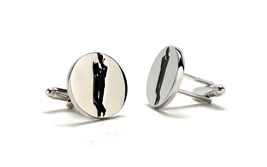James Bond Cufflinks Famous Movie Poster Pose Cuff Links Super Spy Collection Royal Silver Platted Black Enamel Emboss Design with Gift Box