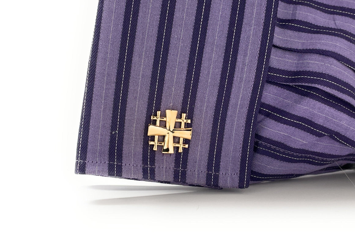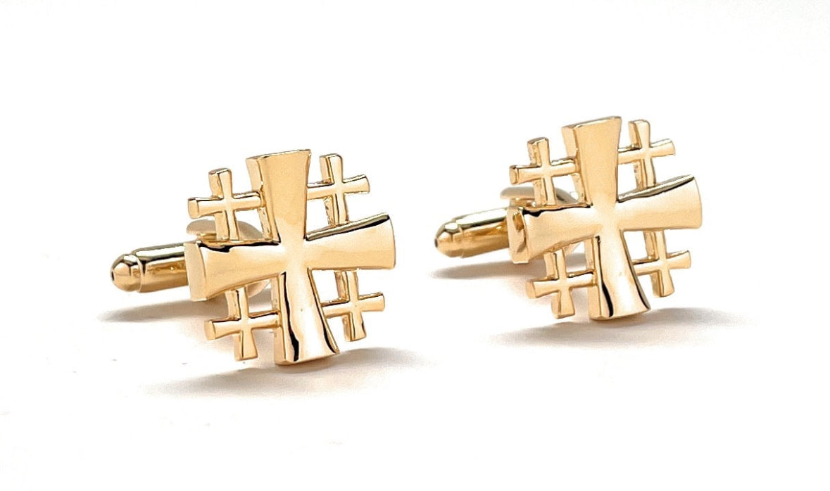 Jerusalem Cross Cufflinks Crusaders Shield Cut Out Design Gold Tone 3D Five-Fold Cross Cuff Links