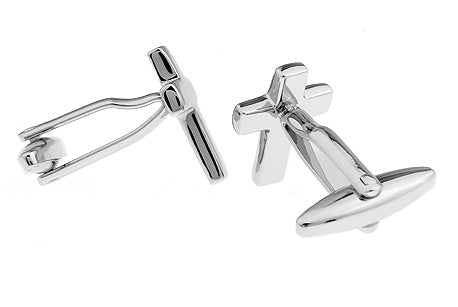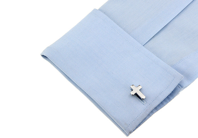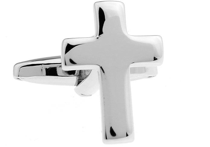 Men's Cufflinks Shiny Silver Cross Man of Faith Cuff Links Religious Gift Pastor Priest