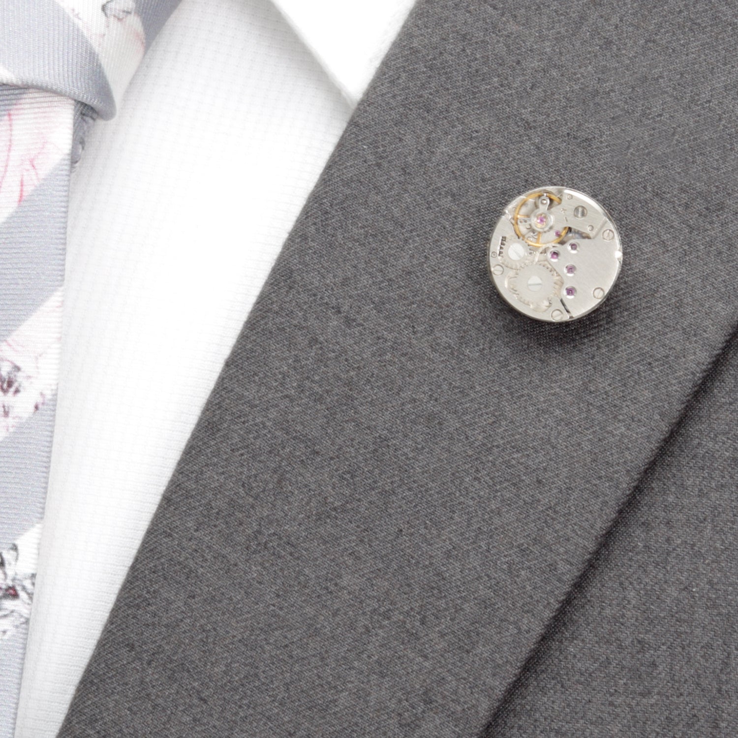 Whether you're a fan of steampunk design or just interested in how mechanical objects function, this unique lapel pin will be the perfect addition to your collection. Open edged and crafted in perfect detail, each pin features jewels, levers, and gears that really turn. Wear alone or pair with our matching watch movement cufflinks.