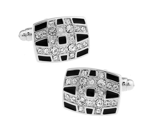 Power Bands of Silver Crystals Cufflinks Designer Highly Detailed Executive Cuff Links Big Crystals Cuffs