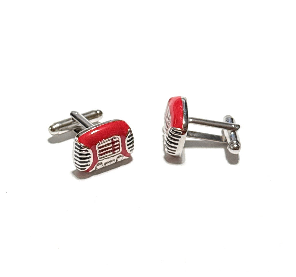 Retro Radio Cufflinks – Vintage Red & Silver Old School Music Lover Accessories