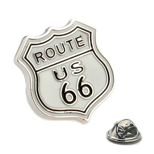 Route 66 Hwy Sign US 66 Lapel Pin White and Black Enamel Pin