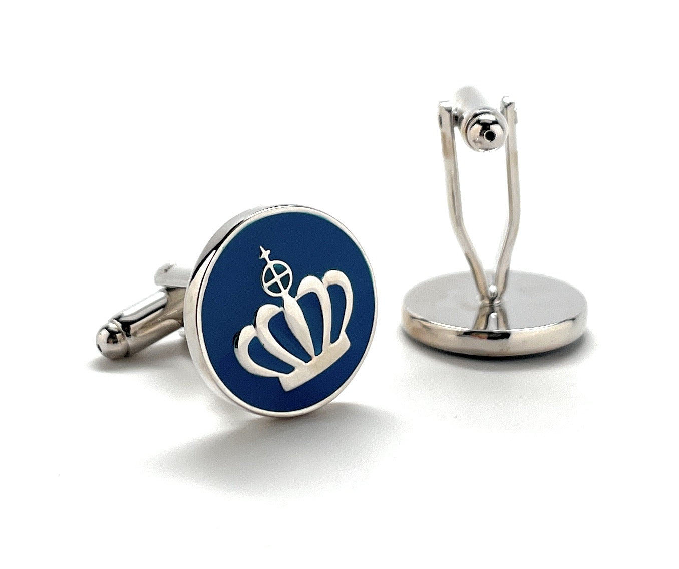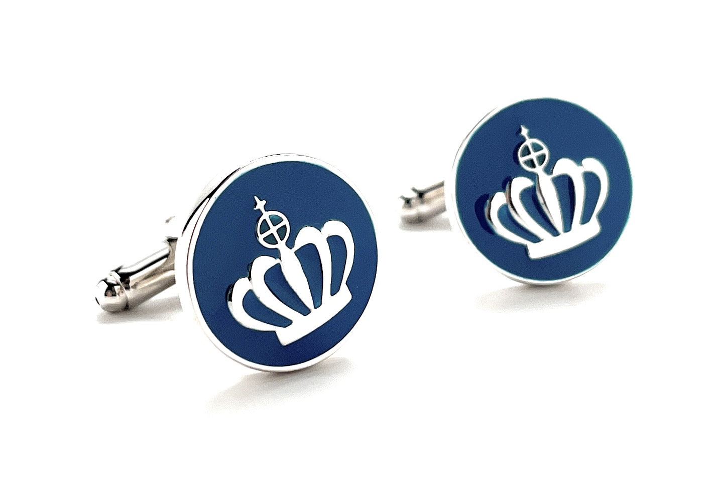 Royal Crown Cufflinks – Elegant Blue and Silver King Crown Design for Men
