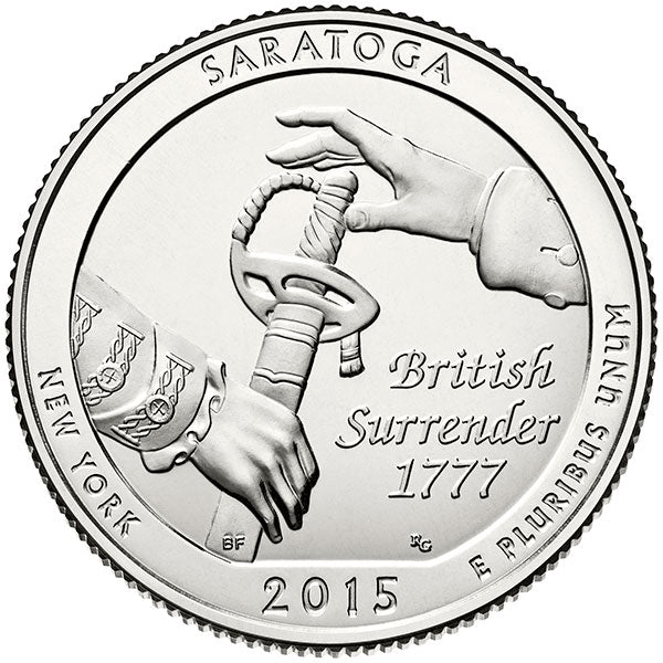 Saratoga National Historical Park is a United States National Historical Park located in the Town of Stillwater in eastern New York, forty miles north of Albany. The park preserves the site of the Battles of Saratoga. In 2010, the United States Mint began issuing 56 quarter-dollar coins featuring designs depicting national parks and other national sites as part of the United States Mint America the Beautiful Quarters Program.