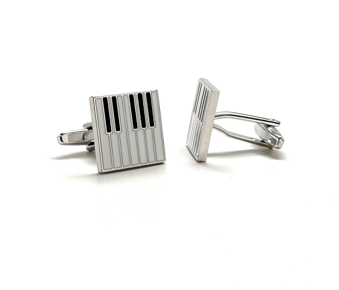 Silver Piano Keys Cufflinks – Musician Gift, Formal Wear Accessory for Pianists & Music Lovers