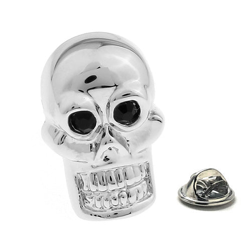 Silver Skull Head Pin Silver Rhodium Platted Black Enamel Pin 3D Design Skeleton Head Cosplay Lapel Pin
