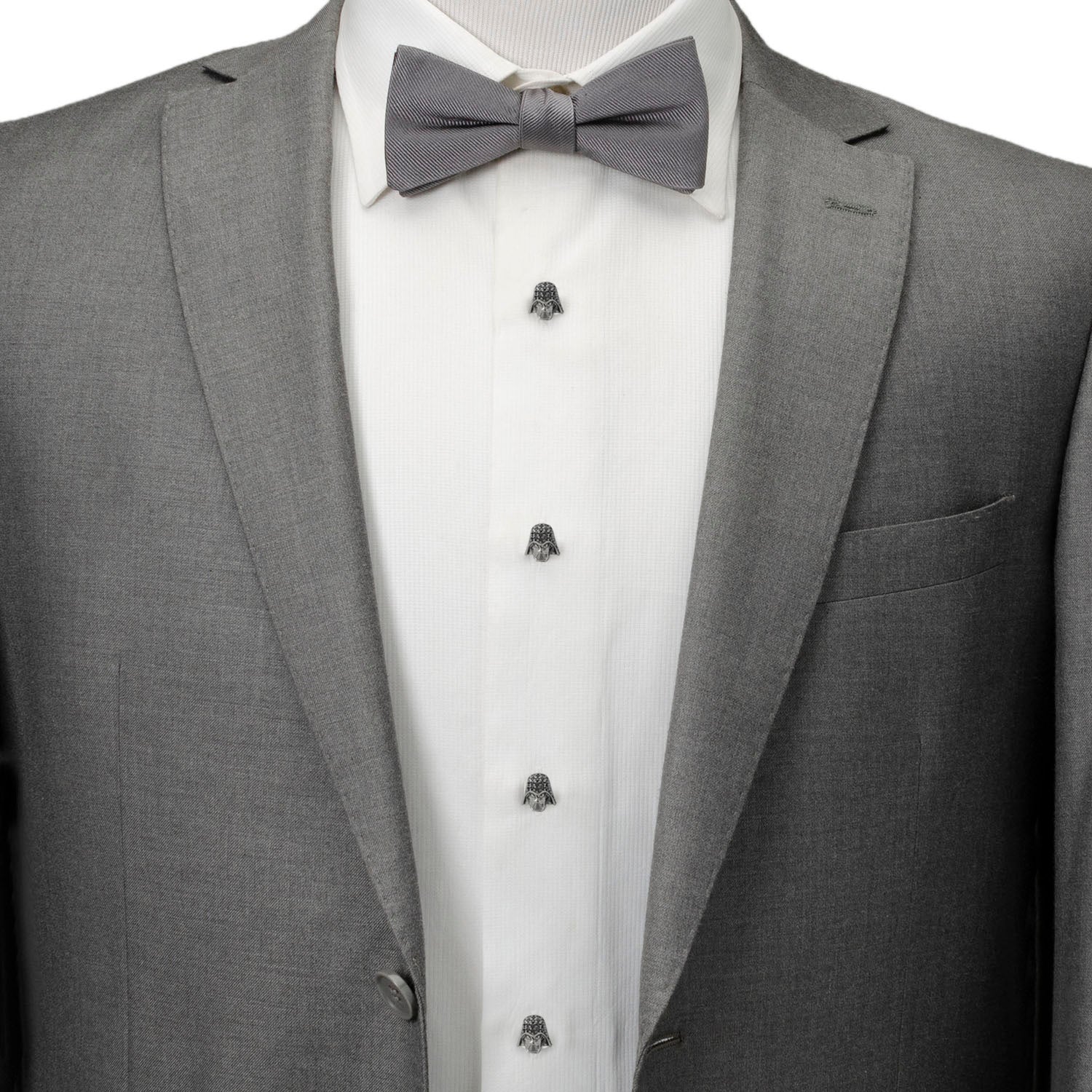 This is the ultimate gift set for fans of Darth Vader and fans of the empire! Our gift set features cufflinks and studs of Darth Vader's helmet, which are crafted in gunmetal and encrusted with the deepest black pavé crystals to ensure they catch the light (and attention of the crowd) anywhere in the galaxy. The backing of both cufflinks and studs feature an embossed logo of the Empire. Experience the Dark Side with our expertly crafted plated base metal stud set. They are built to withstand the tests of galactic events, infused with the Sith, and ready to accompany you on interstellar orders. Officially licensed by LucasFilm LTD.