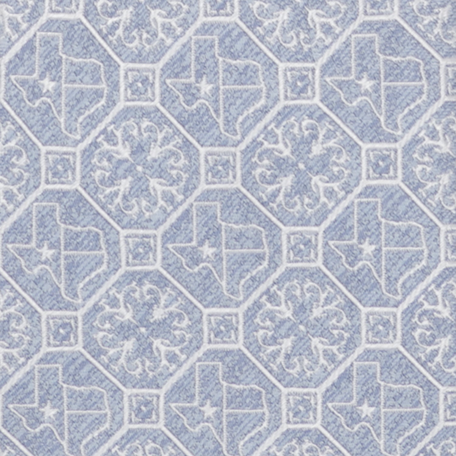 If you're looking for a soft summer tie, then look no further. This pale blue denim-feel neck tie is 100% cotton and perfect for summer formal events. Featuring decorated images of the Lone Star State on a geometric background, it's a simple way to show your appreciation for your beloved Texas home.