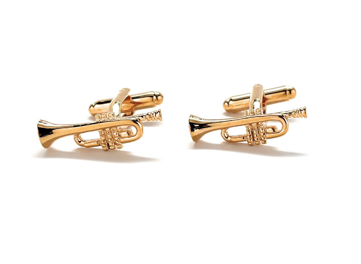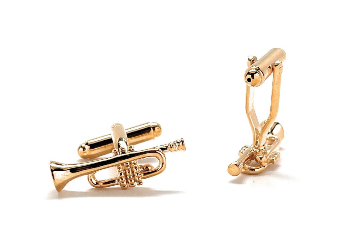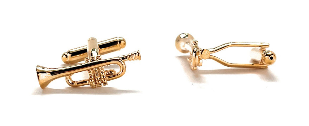 Trumpet Cufflinks Gold 3D Design Music Band Musician
