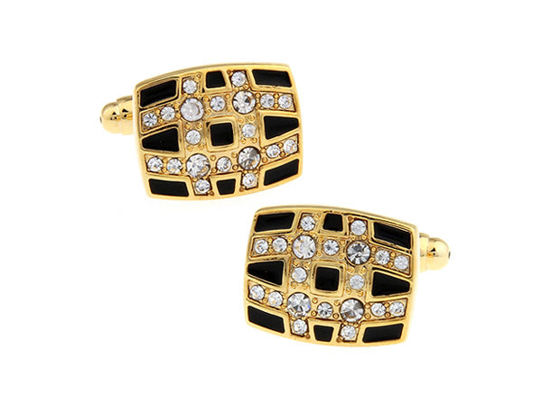 Vegas Nights Cufflinks Gold with Crystals Bands Black Enamel Cuff Links High Rollers Delight Groomsman Gift Power Cuffs