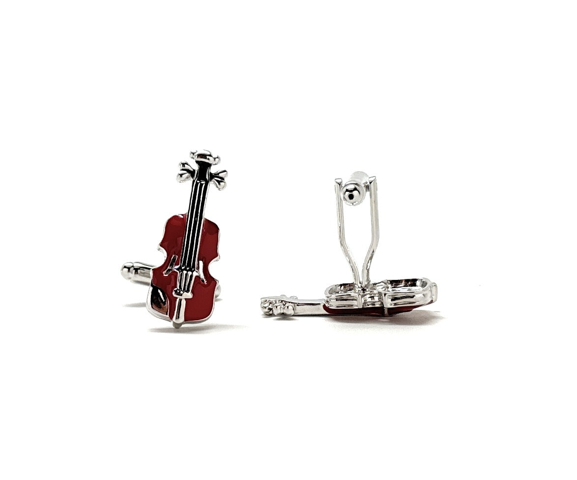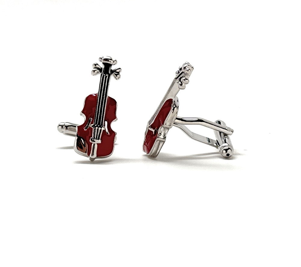 Violin Cufflinks Silver Plated Highly Detailed Burgundy Enamel Music Orchestra Cuff Links