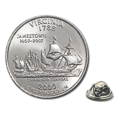 Virginia State Quarter Coin Lapel Pin Uncirculated U.S. Quarter 2000 Tie Pin
