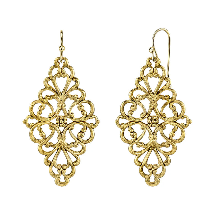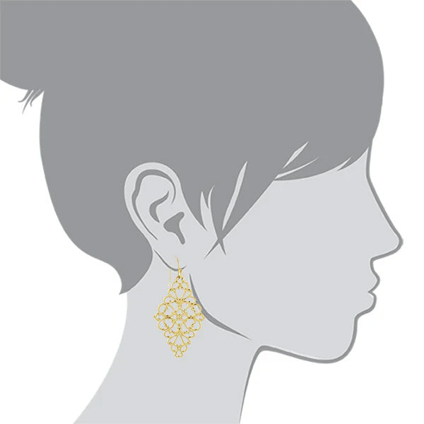 Women's Earrings Gold Finish Jewelry Filigree Diamond Drop Earrings