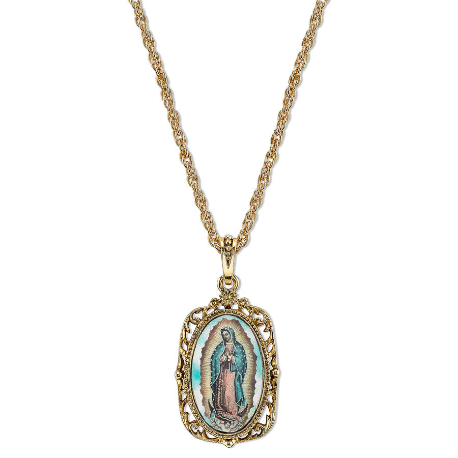 Women's Necklace Gold Symbols Of Faith Lady Of Guadalupe Medallion Pendant Necklace 24"