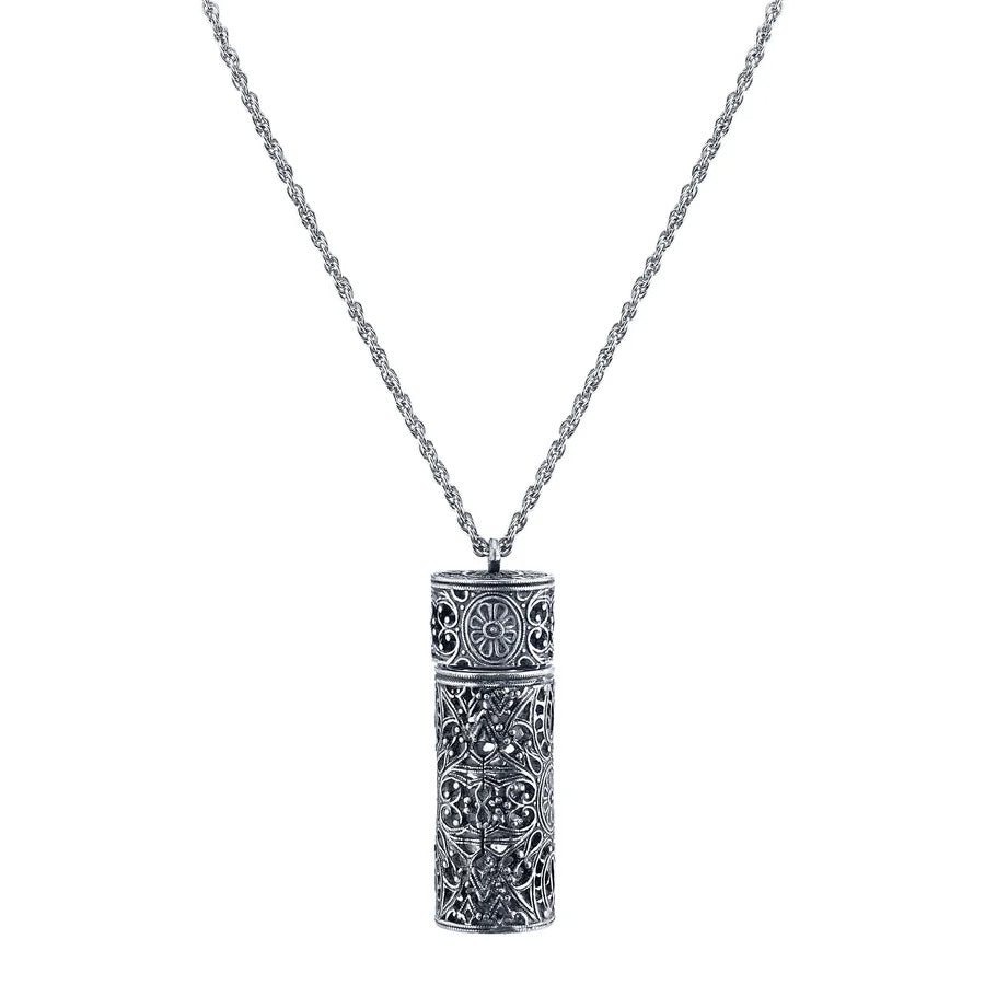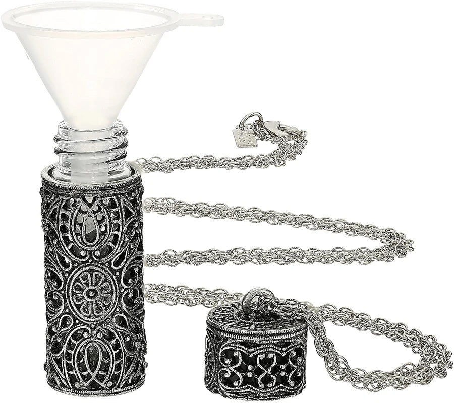 Women's Necklaces Silver Jewelry Antiqued Filigree 3.69 ML Glass Vial Pendant Necklace 30"